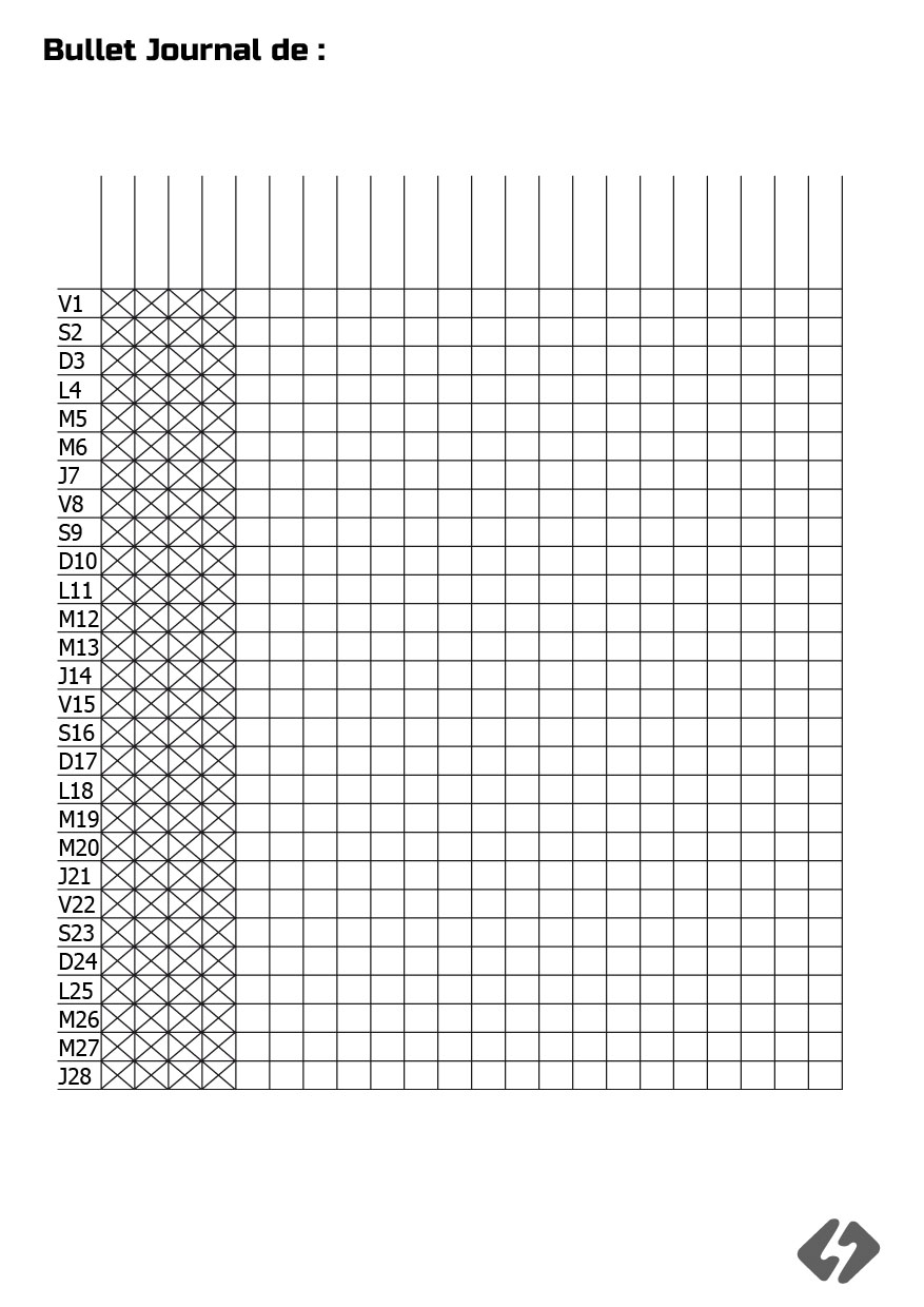 Et version papier, j’ai décidé de l’organiser dans l’autre sens, en laissant de la place pour pouvoir ajouter des lignes si besoin. C’est juste un côté pratique pour avoir mon propre bullet journal et les trois leurs en deux pages. Nous pouvons vraiment nous organiser comme on le désire !